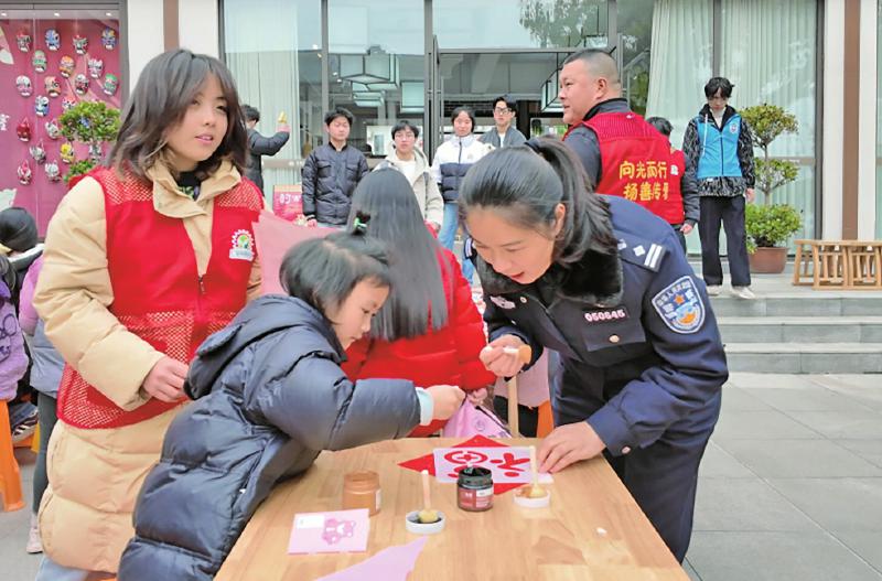 托管班不只是“看孩子”,更突出“育人心”。每日1小时作业辅导查漏补缺,每日2类主题课堂常讲常新。临近春节,消防安全、居家安全、出行防滑、禁燃禁放等成为重点。“警察叔叔教我们火场逃生、不玩烟花爆竹,还帮我讲数学题。”一名孩子拿着刚完成的绘画,开心地告诉记者。