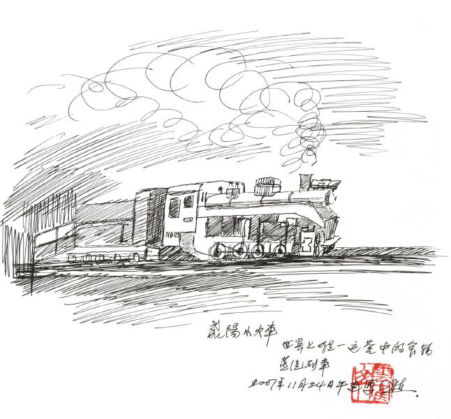 乐山籍书画家周云鹤的小火车速写图