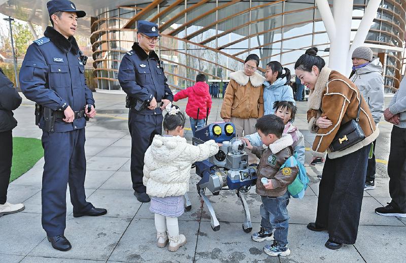 在园区核心观赏区,民警杨栋良一边巡逻一边提醒:“请大家有序观赏,禁止投喂,不要翻越护栏,照顾好老人小孩。”