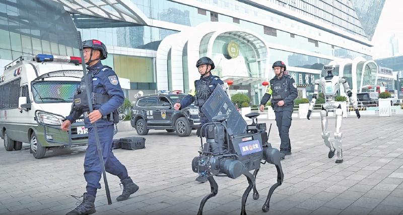 全尺寸人形机器人混编巡逻、机器狗灵活穿梭、警用无人机空中巡航……今年春节期间,在成都的大型商圈、重要道路、旅游景点、公交地铁等人员密集场所,成都市经信局市新经济委联合市公安局推动一系列“成都造”新锐装备赋能警务实战,构成了“空中+地面+单兵+智能服务”的立体防控体系,用硬核产业实力守护群众的幸福与安全。