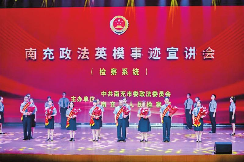 弘扬英模精神凝聚合力,以典型引领激发活力,彰显队伍风采。南充政法机关坚持把选树先进典型作为弘扬正气、凝聚人心、鼓舞斗志的重要抓手,深入挖掘宣传政法英模、一线平安守护者的先进事迹,用立体鲜活、生动感人的故事,展现新时代南充政法队伍“立党为公、执法为民”的良好形象。成功举办全市政法系统英模事迹报告会(检察专场),组织600名政法干警现场感悟榜样力量、汲取奋进动力,充分发挥先进典型示范引领作用,在全市政法系统营造崇尚英模、学习榜样、争当先进的浓厚氛围。