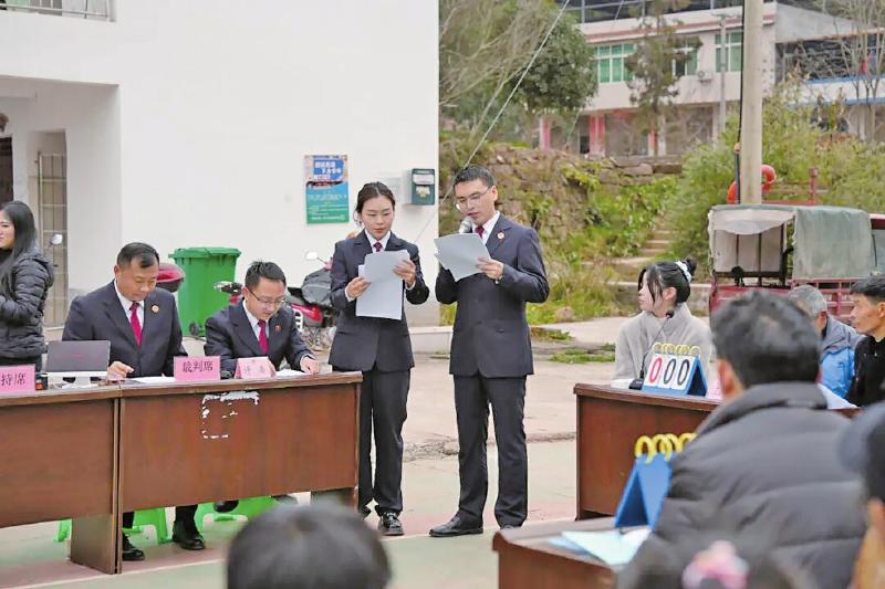 “办了酒席就算结婚了吗?”互动环节中,主持人话音刚落,台下村民李大叔便将正确答案说出,高高兴兴地领走了奖品。实用的问答奖品激发了群众的参与热情,现场50余名村民从“旁观者”变为了“学法主角”。据统计,互动环节共解答群众法律咨询23条。