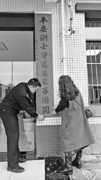 3月13日,张女士送来对联,和民警一起将对联贴在派出所大门上。红色的对联在春日暖阳下熠熠生辉,每一笔每一划都凝聚着群众最真挚的感谢,也承载着民警最执着的坚守。