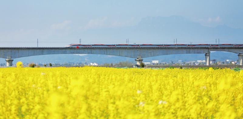 摄影:宋道君摄于成贵高铁乐山高新区段,背景远方是峨眉山(作者单位:乐山市中级人民法院)