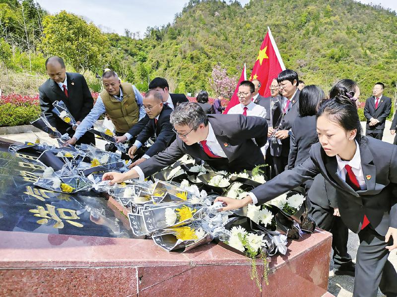 烈士陵园广场松柏苍翠,丰碑屹立。法院干警们肃立瞻仰,聆听讲解员讲述1933年红军战士在杨柳关浴血奋战的壮烈往事,向英烈默哀鞠躬、敬献鲜花,并重温入党誓词。步入陵园内,干警们清理落叶、杂草,轻轻擦拭碑面,并怀着敬意为一颗颗五角星描红。活动结束后,干警们纷纷表示,将把对革命先烈的崇敬之情转化为司法为民、公正司法的实际行动。