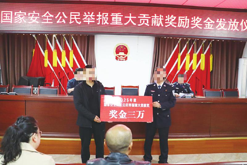本报讯(李晓明 四川法治报全媒体记者 杨棕贤 文/图)佯装不懂中文?谎称在拍风景?3名雅安市民凭借安全防范意识和“火眼金睛”识破间谍伪装,让间谍行为无所遁形……近日,雅安市国家安全机关举行国家安全公民举报重大贡献奖励奖金发放仪式,对2025年度为维护国家安全作出重大贡献的3名市民进行表彰,颁发奖金共计3万元。