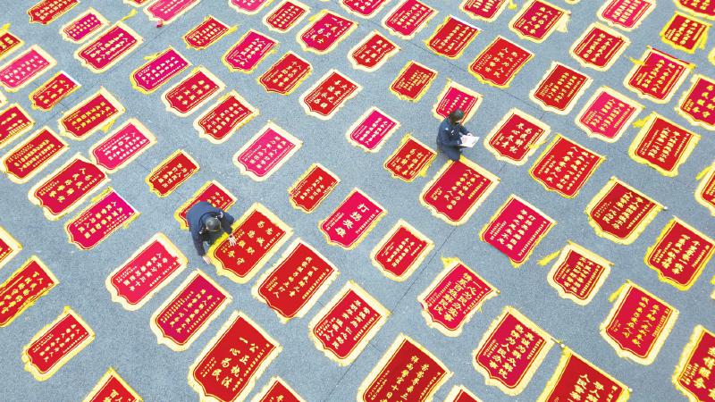 2023年12月16日,胡祥雨和同事利用周末时间,将近几年收到的锦旗进行登记整理。自2019年来,全国各地群众共送来锦旗300余面,每一面锦旗,背后都是一个梦圆的家庭的感人故事。(唐超 摄)