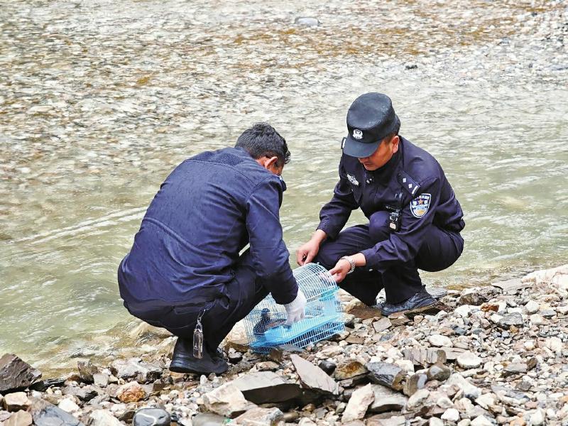 摸清物种信息和健康状况后,民辅警本着科学管护、暖心救助的原则,小心翼翼地把这只黑颈鸊鷉转移到临时照料点。在民辅警的悉心照顾下,黑颈鸊鷉的各项身体体征恢复到正常水平。随后,民辅警挑选了乡城县一处水质优良、食物充足、环境适宜的天然河湖水域,将黑颈鸊鷉顺利放归大自然。 张雨 文/图